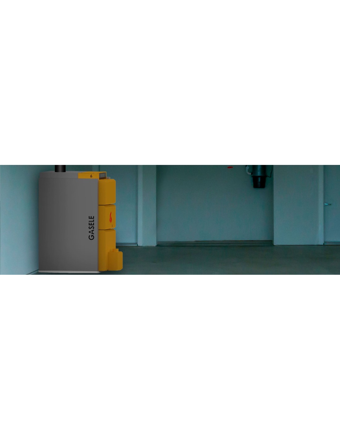 El modelo Gasele 28 Kw es uno de los más eficaces del mercado gracias a su sistema de salida de humos de 150 mm y 175 mm a partir de un quemador de fundición óptimo. la misma posee una cámara de combustión revestida de acero, facilitando el total aislamiento, además de un paso de humos de fácil mantenimiento mediante el accionado manual. Respecto a la seguridad, la caldera contiene termostatos de seguridad en salida de humos, tolva y presostato de seguridad. Su Racor ¾ facilita el flujo de agua del circuito mientras el Racor ½ acciona la seguridad esperada. Puede programarse semanalmente y su sistema de autolimpieza controlada electrónicamente asegura un mantenimiento en tiempo récord.