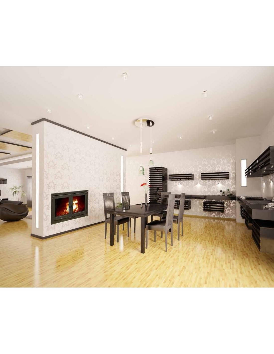 Si buscas un sistema de calefacción potente y elegante, este hogar de leña con campana es la elección perfecta. Su estructura en acero y bloque de fundición garantiza resistencia y durabilidad, mientras que su diseño de doble puerta abatible en ambas direcciones proporciona comodidad y practicidad.